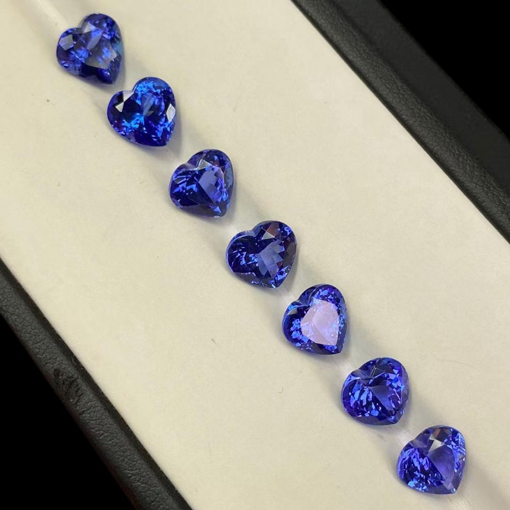 These 6 tanzanite gems have been expertly cut into elegant heart shapes. These azure marvels show off their brilliant color and clarity. With a VVS clarity grade, these make a gorgeous addition to your collection. They will make fantastic custom-made jewelry for that special moment.