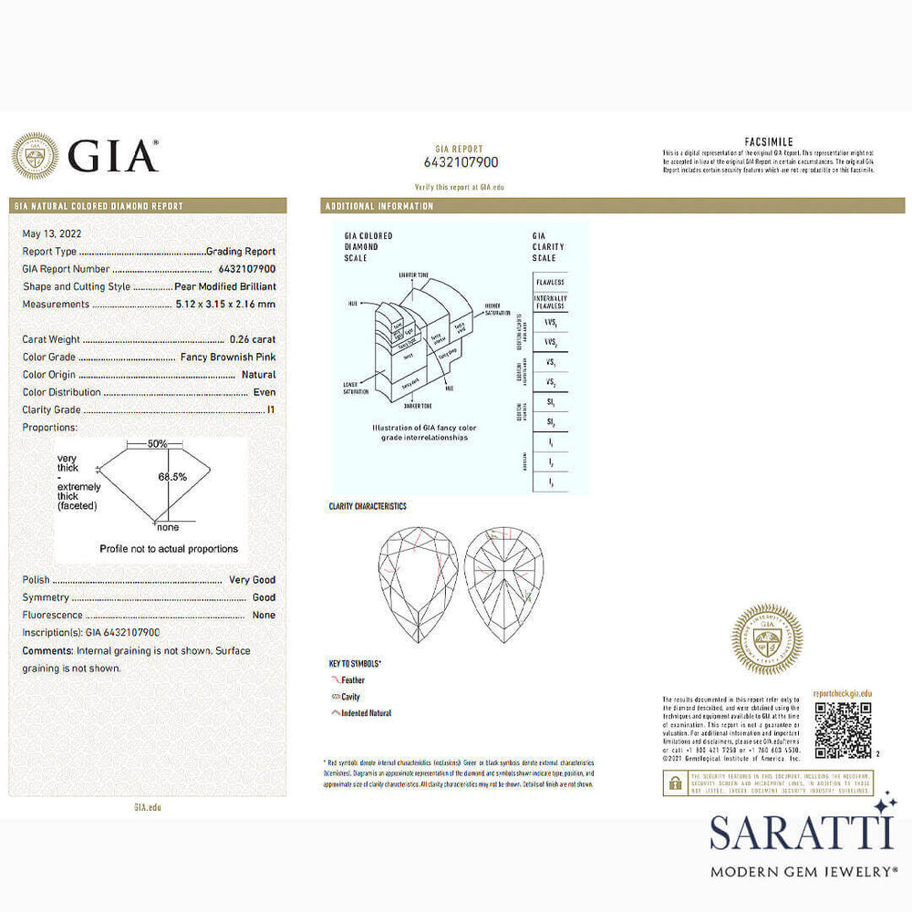 This 0.26-carat pear-cut diamond is a tiny titan of brilliance and color. It defies its modest size with an explosion of character. Its fancy brownish pink hue is a true harmony of romance and warmth. This is a gem that has been transformed from a mere adornment into a mini masterpiece of nature.