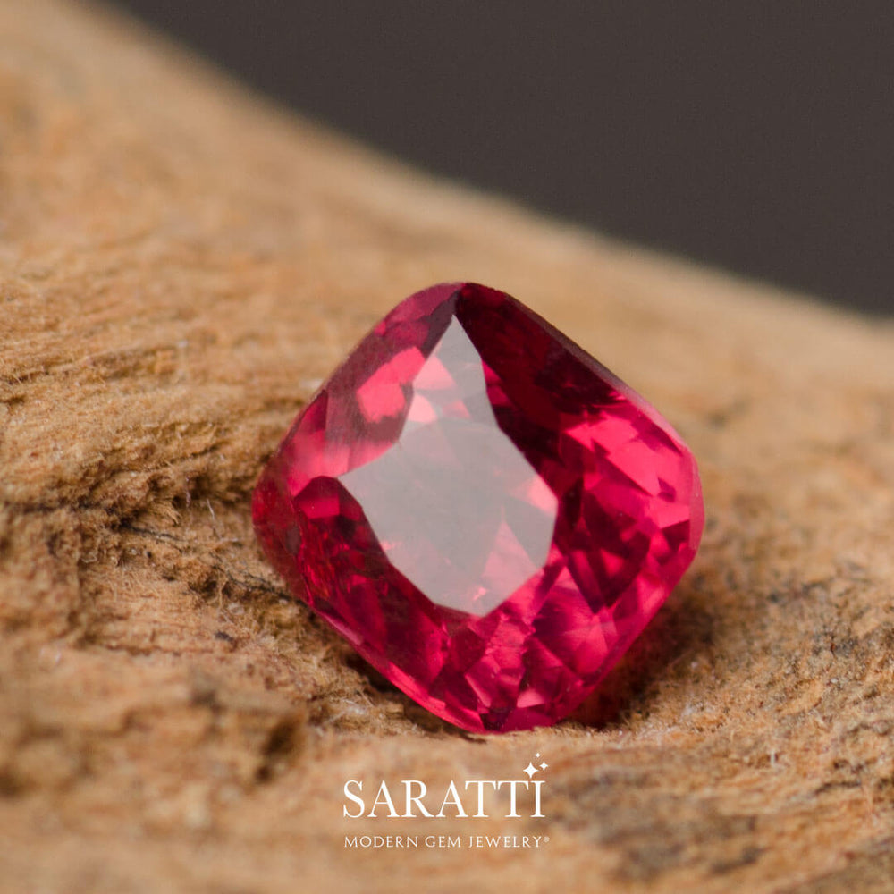 The color of this spinel is truly mesmerizing- a blend of red and pink that resembles that of a blooming rose. This unique pinkish-red hue sets it apart from traditional red gemstones, offering a softer, romantic appeal while maintaining the intensity associated with red gemstones. The tone is saturated, catching light with every movement and from every angle with an inviting glow.