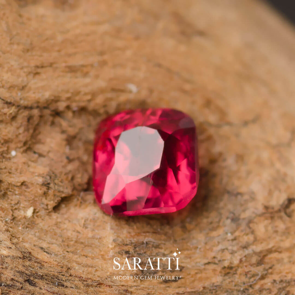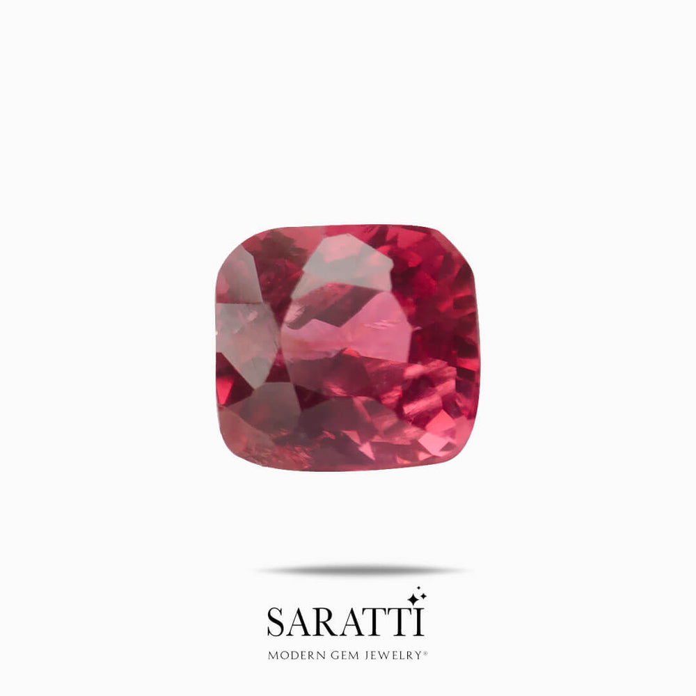Be enchanted by this exquisite pinkish-red spinel, a gem that embodies romance and passion. At 0.33 carats, this natural stone may be petite, but its vivid hue and great sparkle make it truly standout. The cushion cut increases its charm, creating a balance between modern and classic flair.