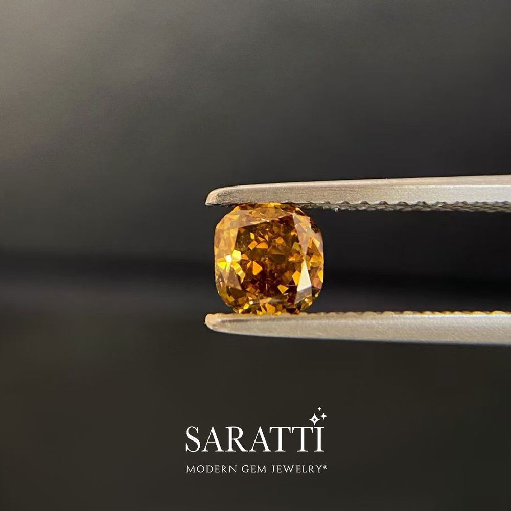 Get acquainted with this 0.76-carat champagne diamond that is a real testament to nature’s artistic prowess. Its cushion-cut, a blend of modern and classic design, amplifies the stone’s natural warmth to new levels of elegance.