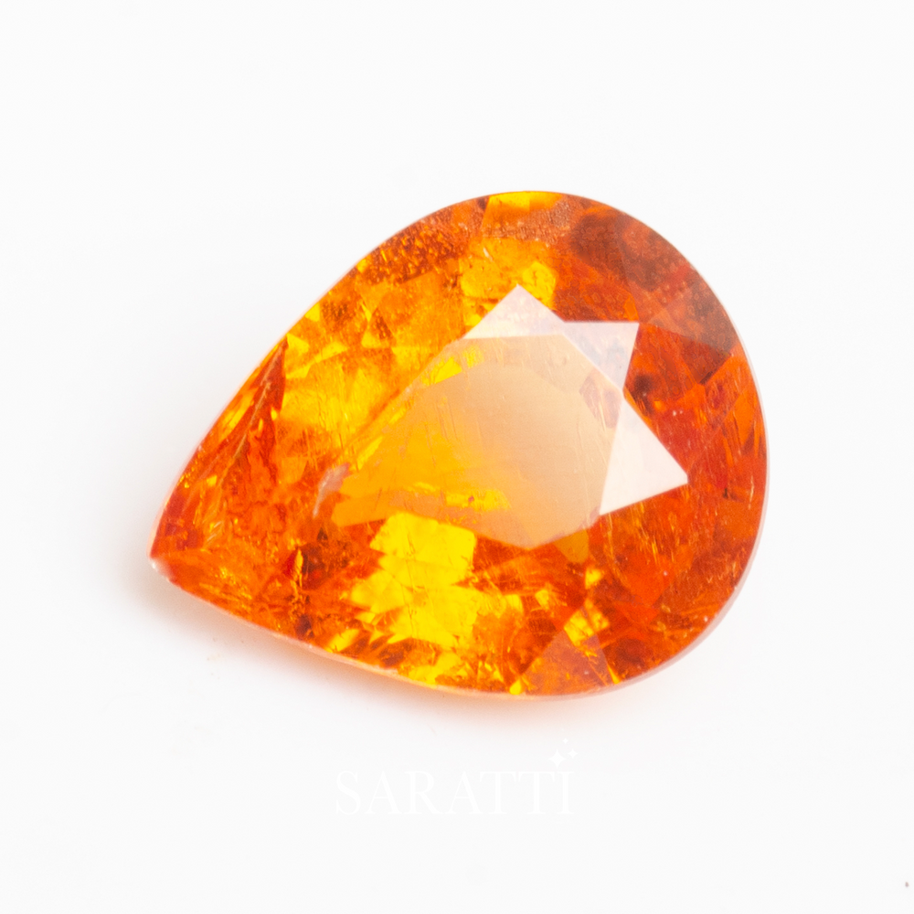 Bursting with the vivid orange glow of an African sunset, this natural Fanta Garnet is a gemstone just waiting to grace any fine jewelry design! Cut and polished in a fine pear cut, the stone measures a sweet 6.6mm × 5.4 mm. The fine cut captures light from every angle, revealing a brilliance that feels alive.