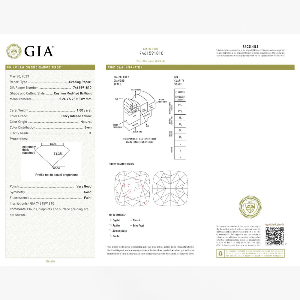 Weighing a full 1.00 carat and accompanied by a GIA Natural Colored Diamond Report, this diamond holds particular appeal due to its combination of size and color grade. Fancy Intense yellow diamonds at the one-carat mark are especially sought after for bespoke rings, pendants, and statement fine jewelry designs.