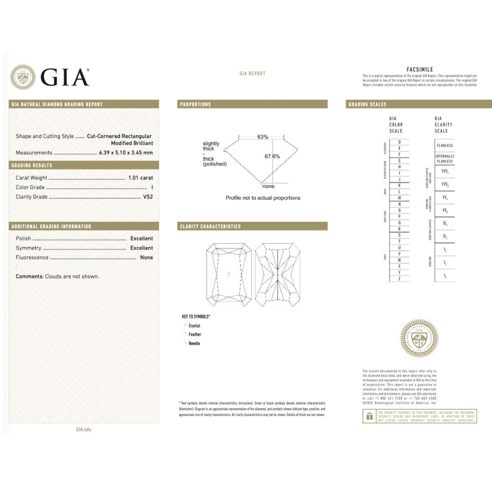 1.01 carat Radiant Cut Color I Natural Diamond | GIA Certified is backordered and will ship as soon as it is back in stock.