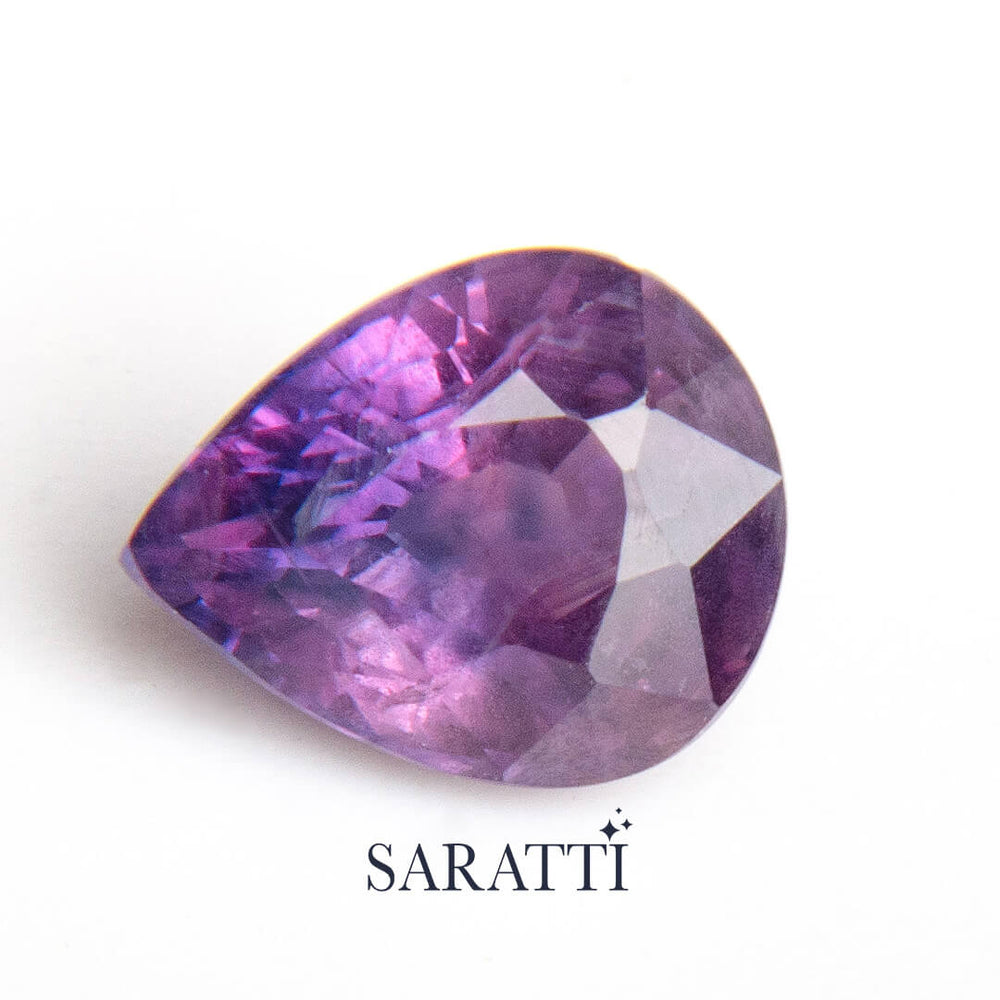 Enjoy the breathtaking beauty of this stunning and vibrant sapphire. This sapphire displays a vivid Purplish hue, cut in a flawless pear shape. The stone measures 7.00 x 5.5mm with a VS-SI clarity. The stone is infused with a stunning amount of trace vanadium and chromium. Depending on the light setting, the stone displays a subtle pleochroism(shifting colors between lavender and royal purple hues) as it moves.