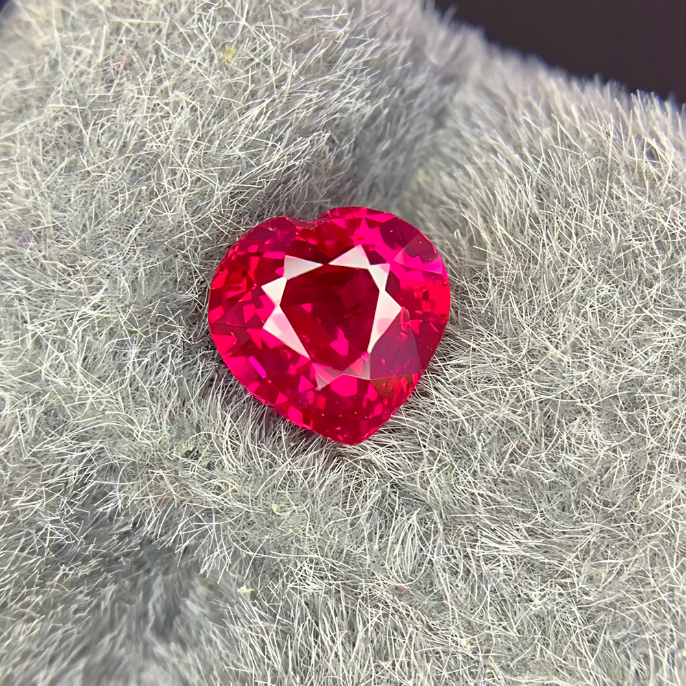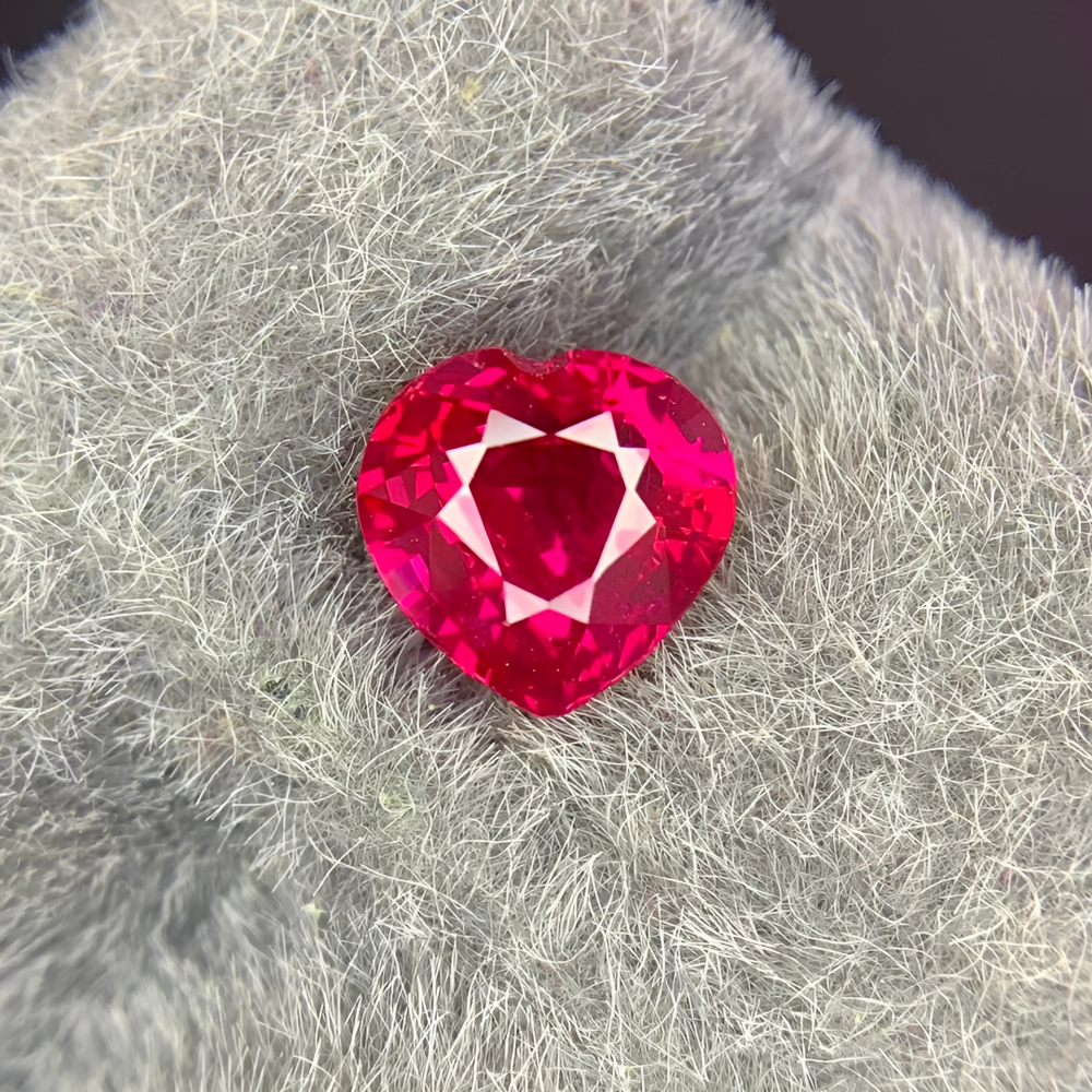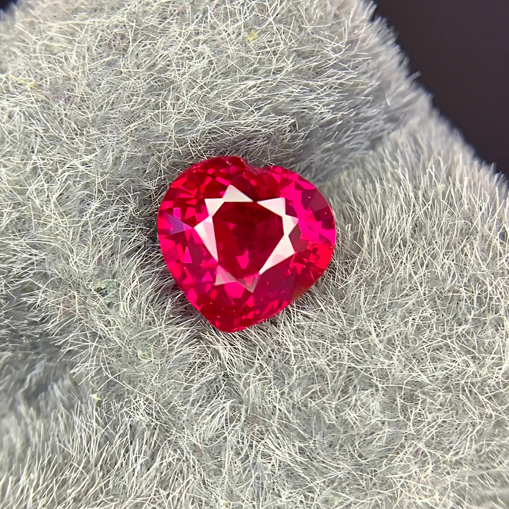 Beneath the calm shade of the twilight, when the sky is painted with tones of deep red, this fine 1.53-carat heart-shaped rare natural ruby comes to life. Shimmering like the fading sunset. Its fine reddish-pink color reminds us of the essence of nature's purest form.