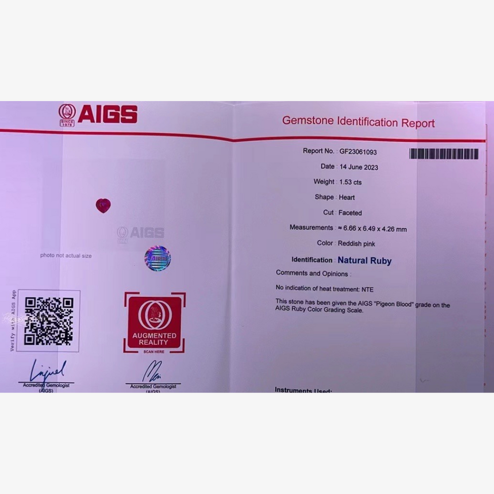1.53 carats Unheated Natural Ruby | AIGS Certified