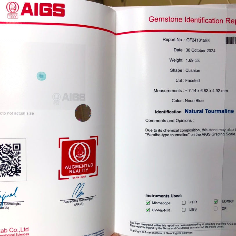 1.69cts Oval Natural Paraiba Tourmaline – AIGS Certified