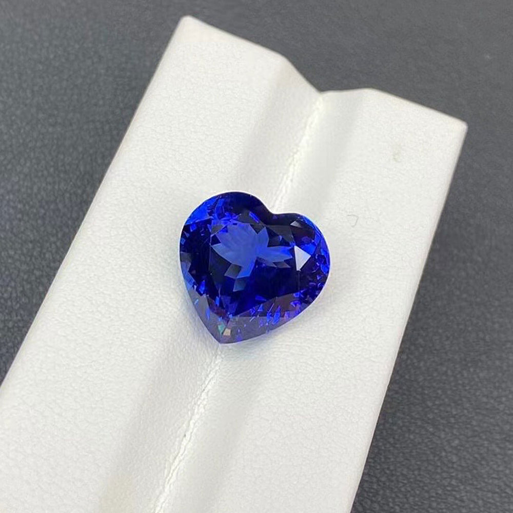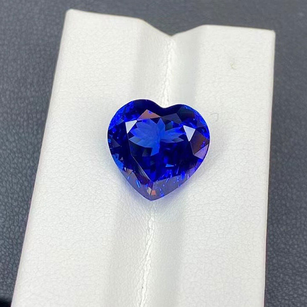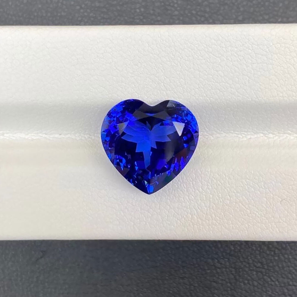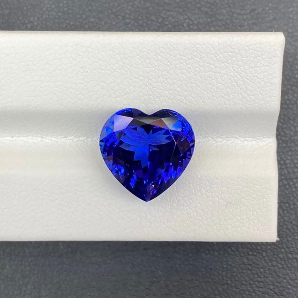 With impressive 13.5mm x 8.8mm dimensions, this tanzanite heart demands attention while maintaining an air of elegance. Expert cutters have achieved a remarkable feat, balancing the delicate curves of the heart shape and the substantial carat weight, creating a piece that is both tender and bold. As light dances through its facets, the stone comes alive, revealing flashes of indigo and violet that adds mystery and depth to its already captivating presence.