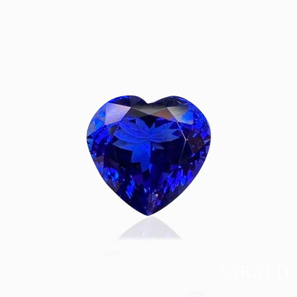 Be enchanted by a gemstone that embodies the rarity of the earth and the depth of human emotion. This extraordinary 5.38-carat tanzanite, cut into a perfect heart shape is a true declaration of love carved from the very cosmos. Its rich blue tone, resembling the deepest ocean and the clearest night sky, seems to pulse with an inner fire that holds the eye and doesn’t let go.