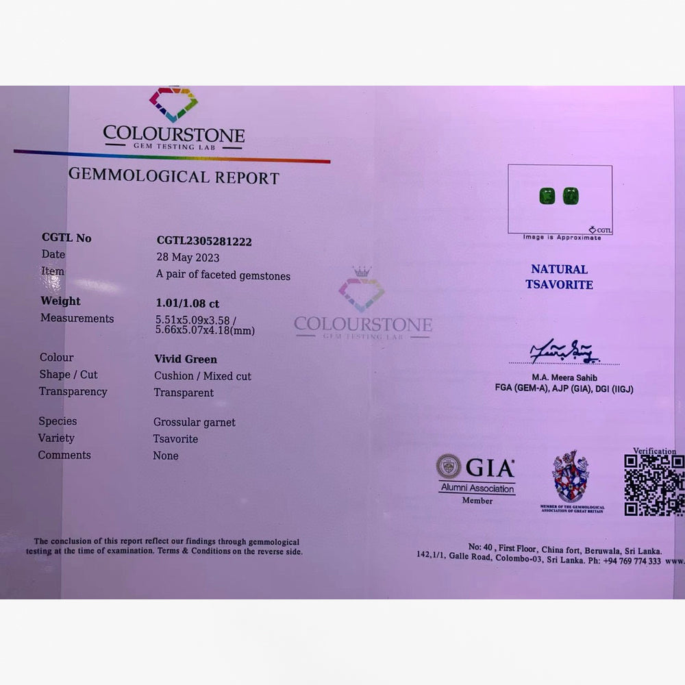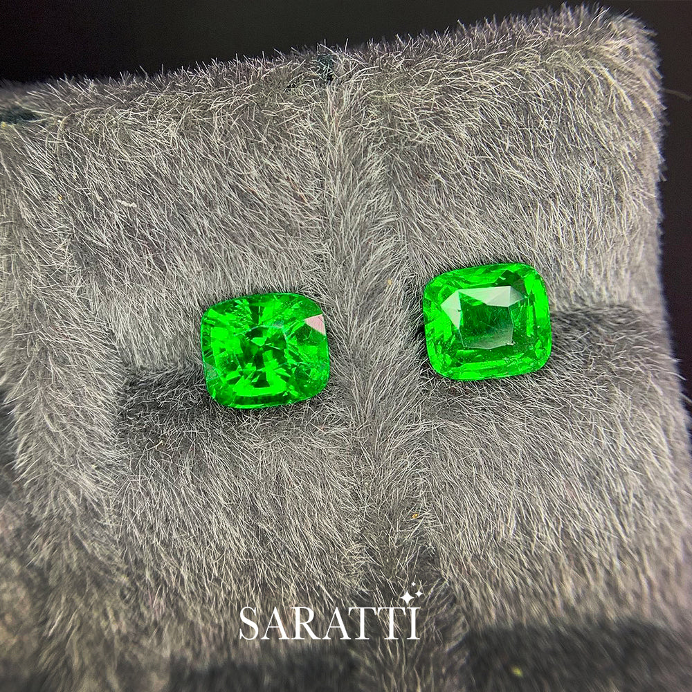 2.09 carats Natural Tsavorite Gemstone Matched Pair – Cushion Shape | 5.51 × 5.09 × 3.58 mm & 5.66 × 5.07 × 4.18 mm