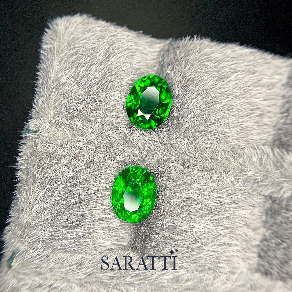 2.09 carats Natural Tsavorite Gemstone Matched Pair – Oval Shape | 5.10 × 6.30 × 3.80 mm