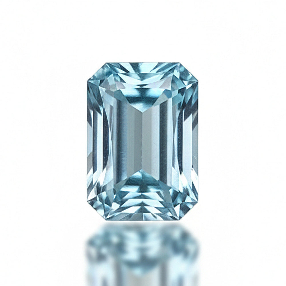 This Santa Maria Aquamarine displays a refined intensity of blue, reminiscent of clear tropical waters seen at depth. Its color is vivid yet composed, offering a balanced saturation that feels both elegant and powerful. The octagonal cut introduces architectural precision, allowing light to travel cleanly through the crystal and return with crisp brilliance. A sophisticated gemstone chosen for collectors and bespoke designs that value clarity, structure, and timeless beauty.