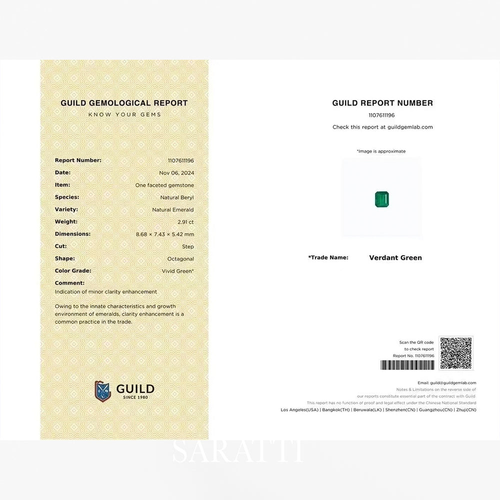 2.91ct Vivid Green Colombian Emerald (Octagonal Cut) | GUILD Certified