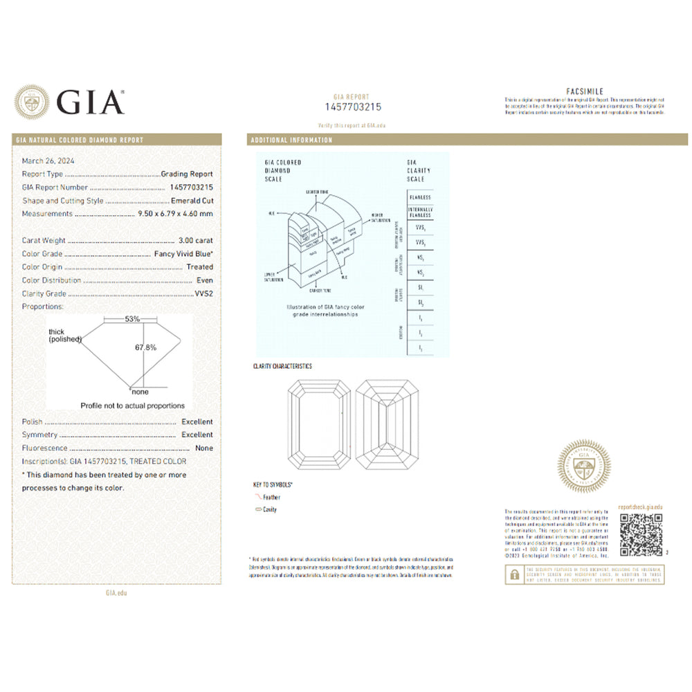 Imagine the deep waters of the Mediterranean at midday, this stunning 3.00-carat fancy vivid blue natural diamond captures the essence of the ocean’s most intense azure tones. Showcasing an emerald cut that measures 9.50 x 6.79 x 4.60mm, this substantial gemstone presents geometric, crisp lines that frame its extraordinary color with impeccable precision. The even color distribution ensures a consistent saturation throughout, creating a mesmerizing blue canvas that demands attention from every angle.