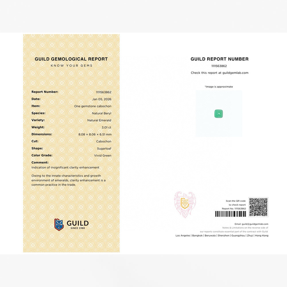 3.01 carats Natural Vivid Green Emerald | Sugarloaf Cabochon – 8.08 × 8.06 × 6.51mm is backordered and will ship as soon as it is back in stock.