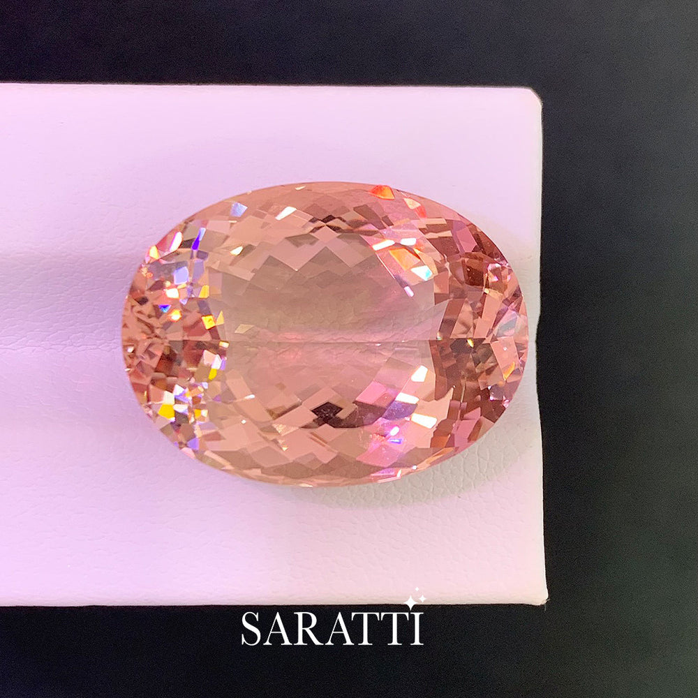 With its impressive size and graceful coloration, this morganite is exceptionally well suited for a royal pendant design. Whether framed in gold or platinum, it is a gemstone meant to sit close to the heart—commanding attention through scale, softness, and timeless beauty.