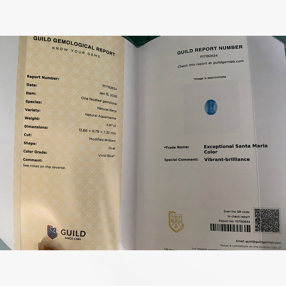 With its substantial size and prestigious Santa Maria color designation, this aquamarine is ideally suited for a high jewelry statement ring, an elegant pendant centerpiece, or a bespoke creation where clarity and refined blue brilliance define the design.