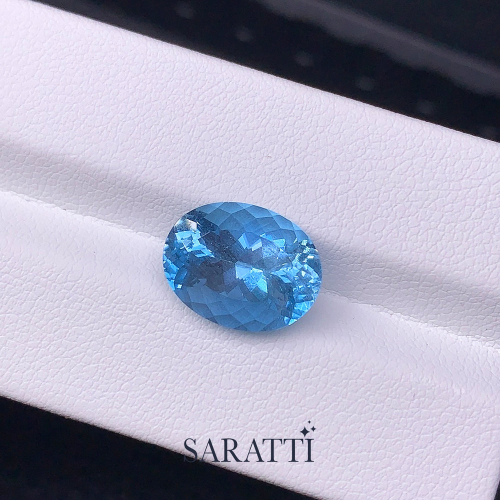 Cut in an oval modified brilliant style, the stone reveals vibrant brilliance and fluid light performance. The faceting enhances its transparency, allowing light to move effortlessly across the surface while maintaining strong depth and internal glow. The crystal appears clean and bright, supporting its exceptional color presentation.