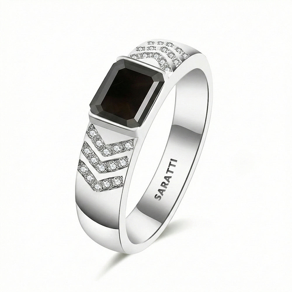 Celebrate your special day & commitment with a touch of class! This beautiful men’s wedding band features a stunning emerald-cut black natural diamond as its center stone. It weighs 1 carat and is securely tension-set. Elevate your love & look with this sleek, classy specimen. For that look that makes it all complete, this is your one-stop wardrobe upgrade!