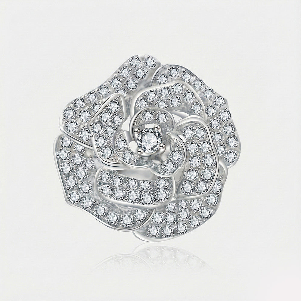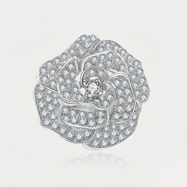 This ring is adorned with brilliant diamonds totaling up to 1 carat, ensuring it catches the light from every angle and shines with every movement. The floral motif is designed to resemble a blooming rose. Each petal is diamond encrusted, creating a sense of depth that brings the flower to life.