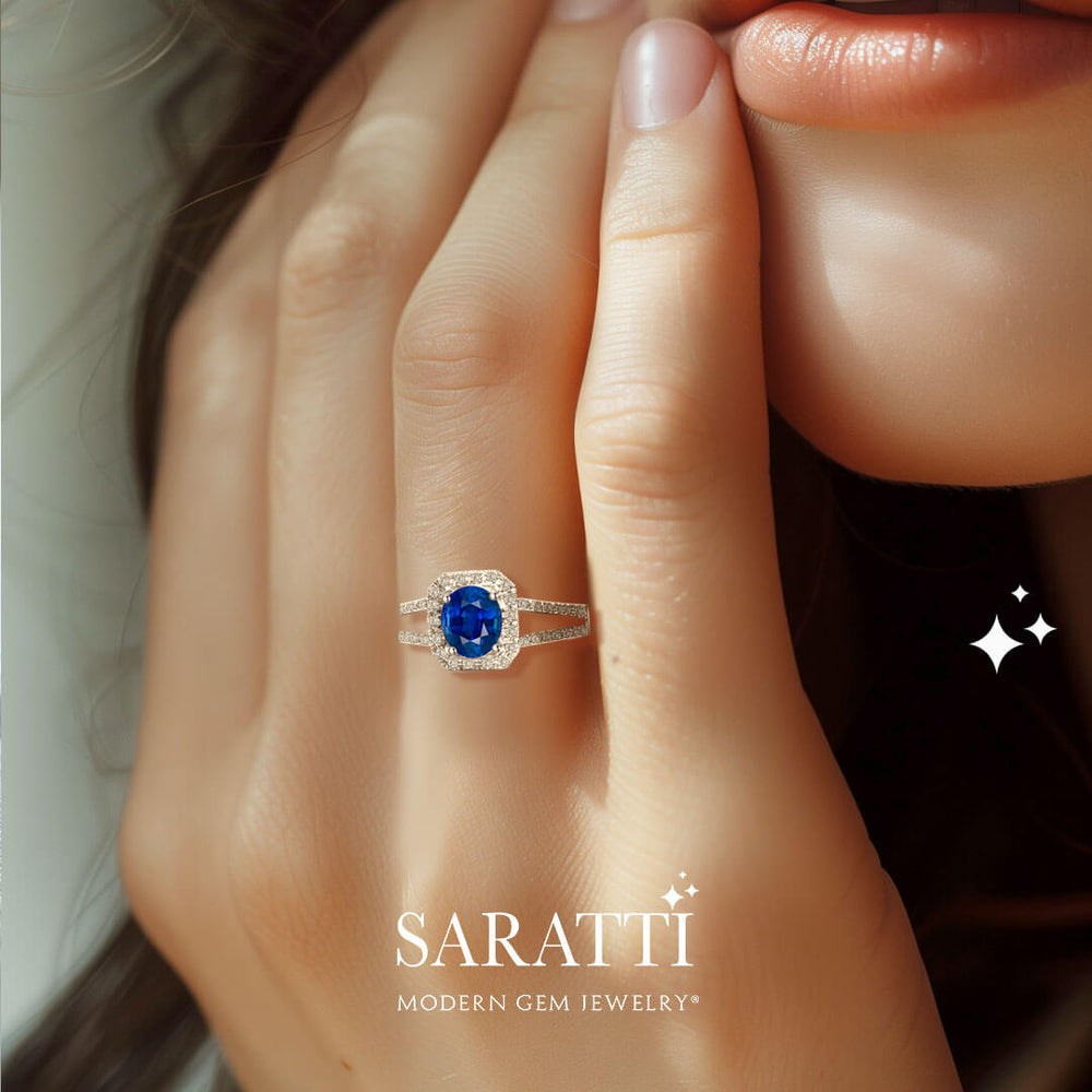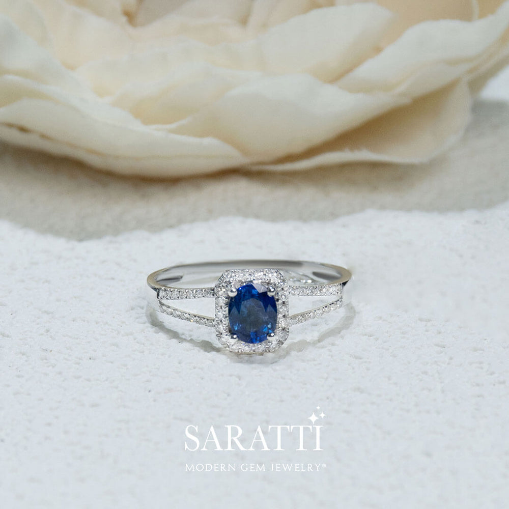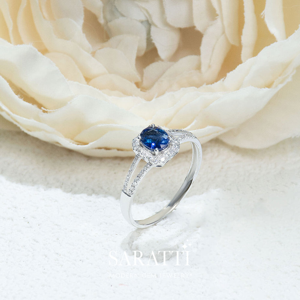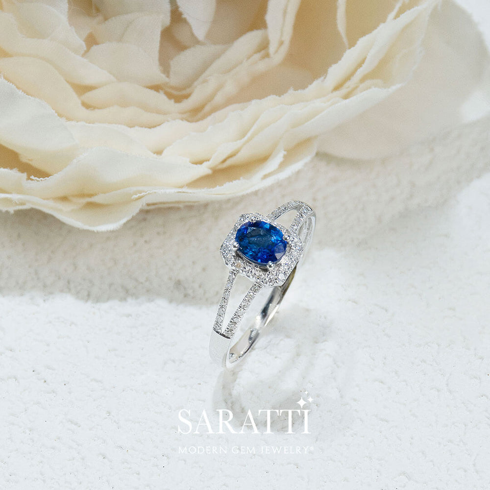 Bleu Royale Natural Sapphire Split Shank Ring