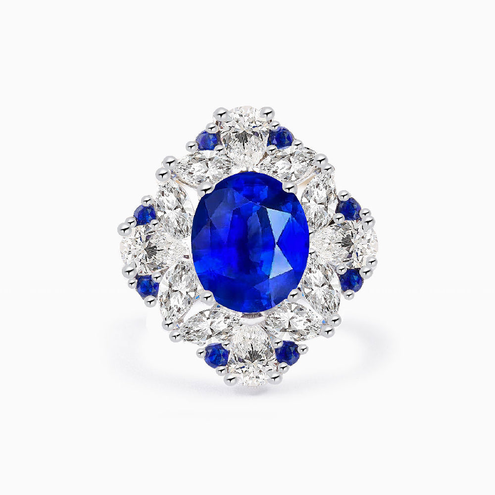 5 carats Unheated Natural Sapphire and Diamonds Cocktail Ring - Better「 AA - Better 」 / 18K White Gold【Made To Order】 is backordered and will ship as soon as it is back in stock.