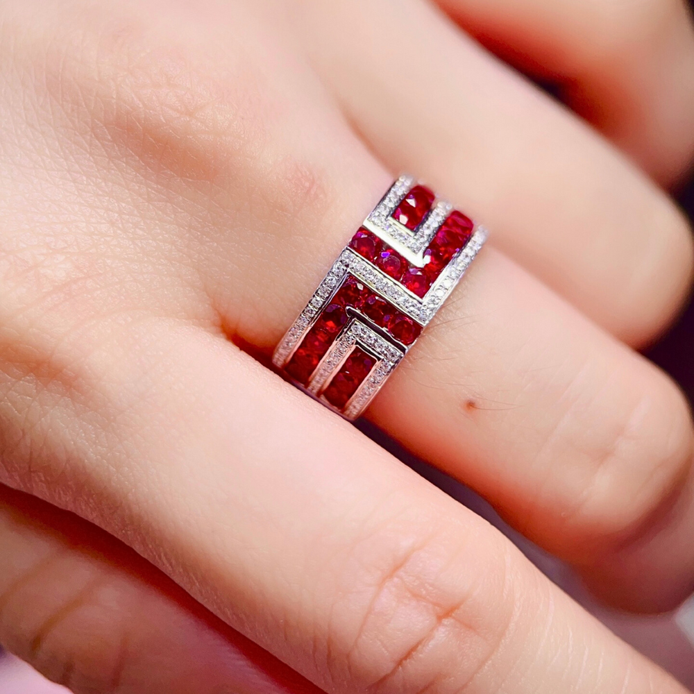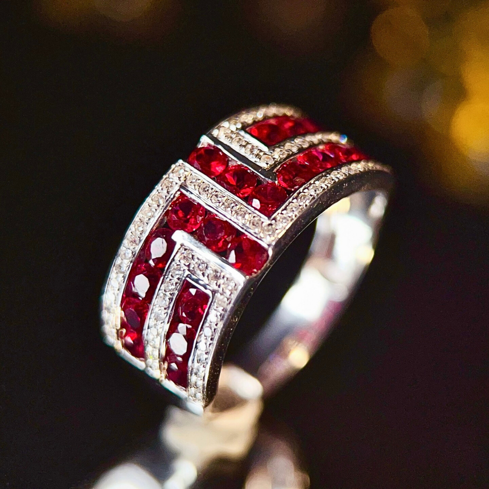 This is a ring that speaks of strength and refinement in equal measure. Its bold form makes it a statement, while its timeless craftsmanship makes it an heirloom. For milestones, celebrations, or simply to honor your own story, Crimson Empire is a jewel that reigns with brilliance.