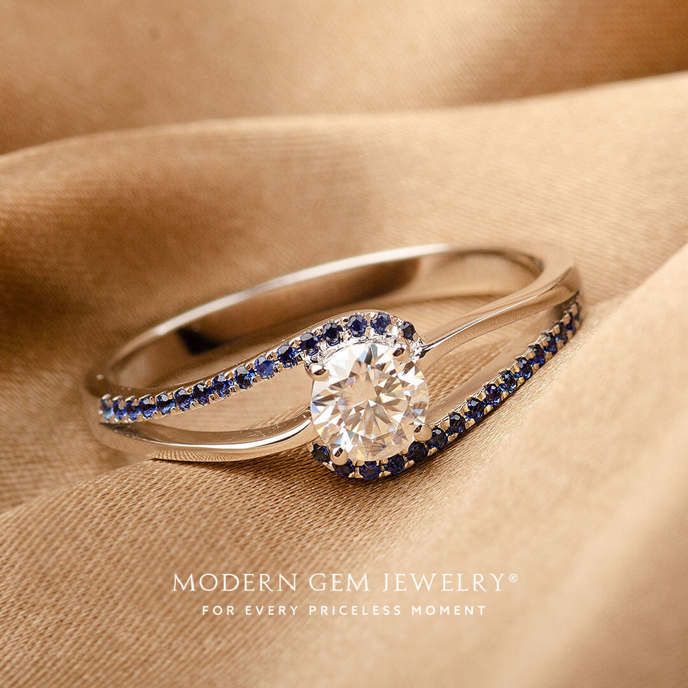Kelly • Diamond and Sapphire Split Shank Engagement Ring