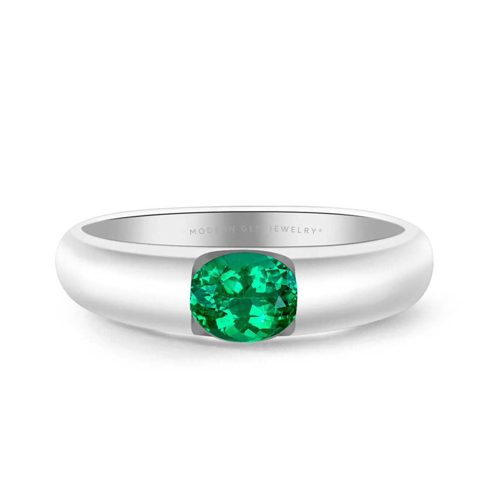 For those who appreciate the simple and straightforward with a classic flair, this emerald piece is calling your name. This emerald ring has a magnificent oval natural emerald as its center stone . The center stone bursts with life, with a vivid green hue that is very inviting It is also tension set in shiny 18K White Gold.