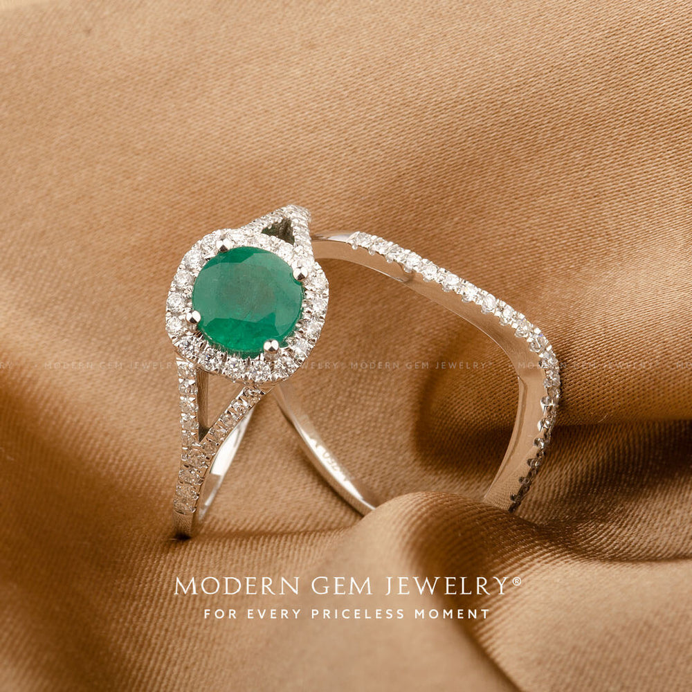 TALIA | Emerald Split Shank Ring and Diamond Band Set