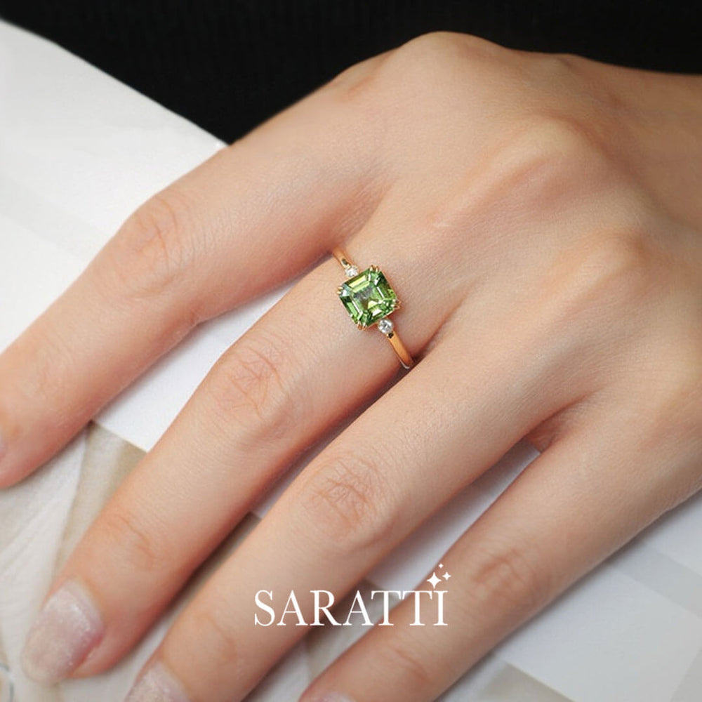 Escalera Verde Three Stone Tourmaline and Diamond Ring