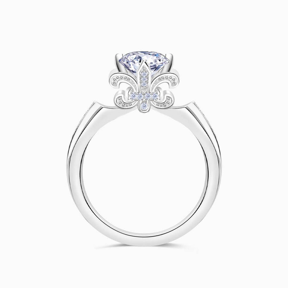 The Fleur de Lis Moissanite Engagement Ring is your regal love in one piece. Don your royal heritage with this sparkling creation. With its fleur de lis design, beauty reigns like a French monarch's emblem. If vintage class rocks your boat, this is yours for the taking.