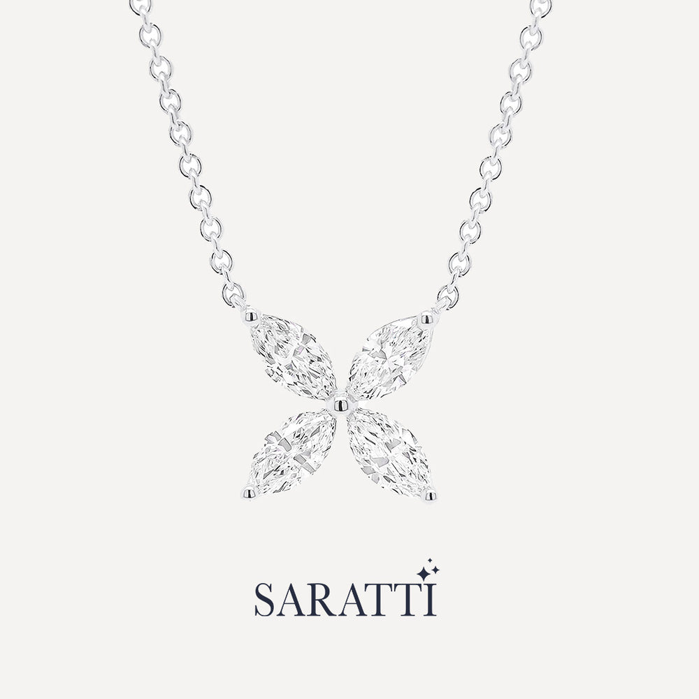 Frosted Petals captures the gentle beauty of a snowflake touched by morning light — soft, pure, and delicately bright. Its marquise “petals” glow with a feminine clarity that warms the skin and lifts your presence in the most effortless way.