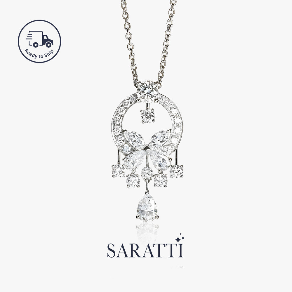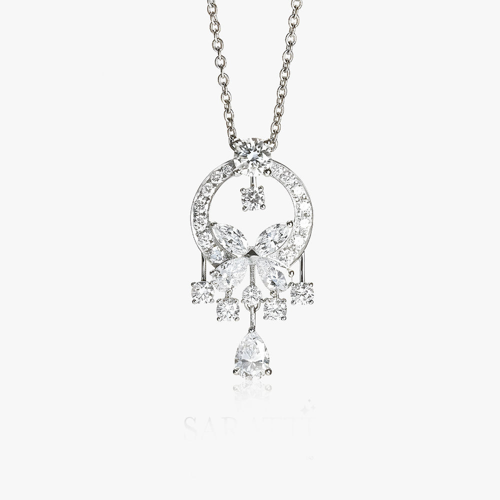 Each diamond is placed like a ray of morning brilliance, opening into a soft circle of purity and calm. With every movement, the piece glows — not loudly, but intimately, like a quiet warmth kept close to the heart.