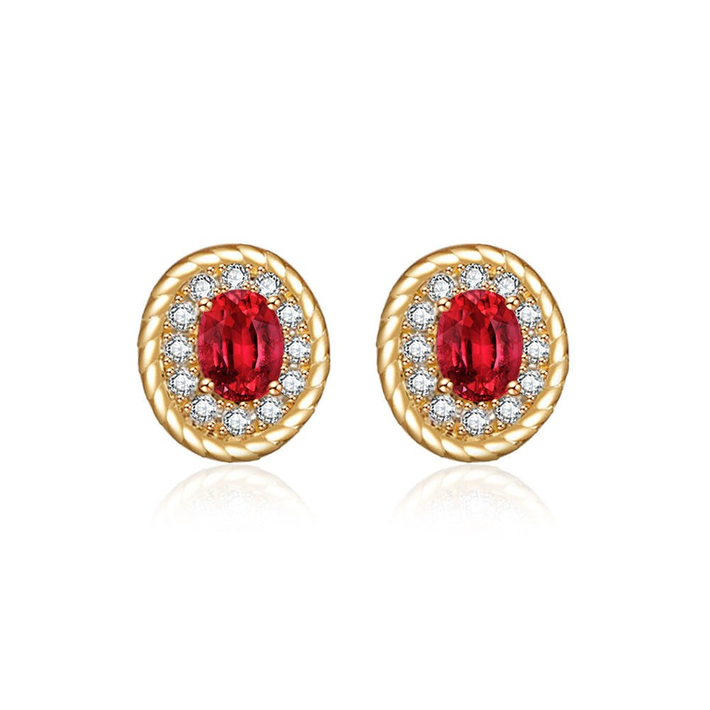 Natural Ruby Earrings & Diamonds Halo In Yellow Gold - Better「 AA - Better 」 / 18K White Gold【Made To Order】 is backordered and will ship as soon as it is back in stock.
