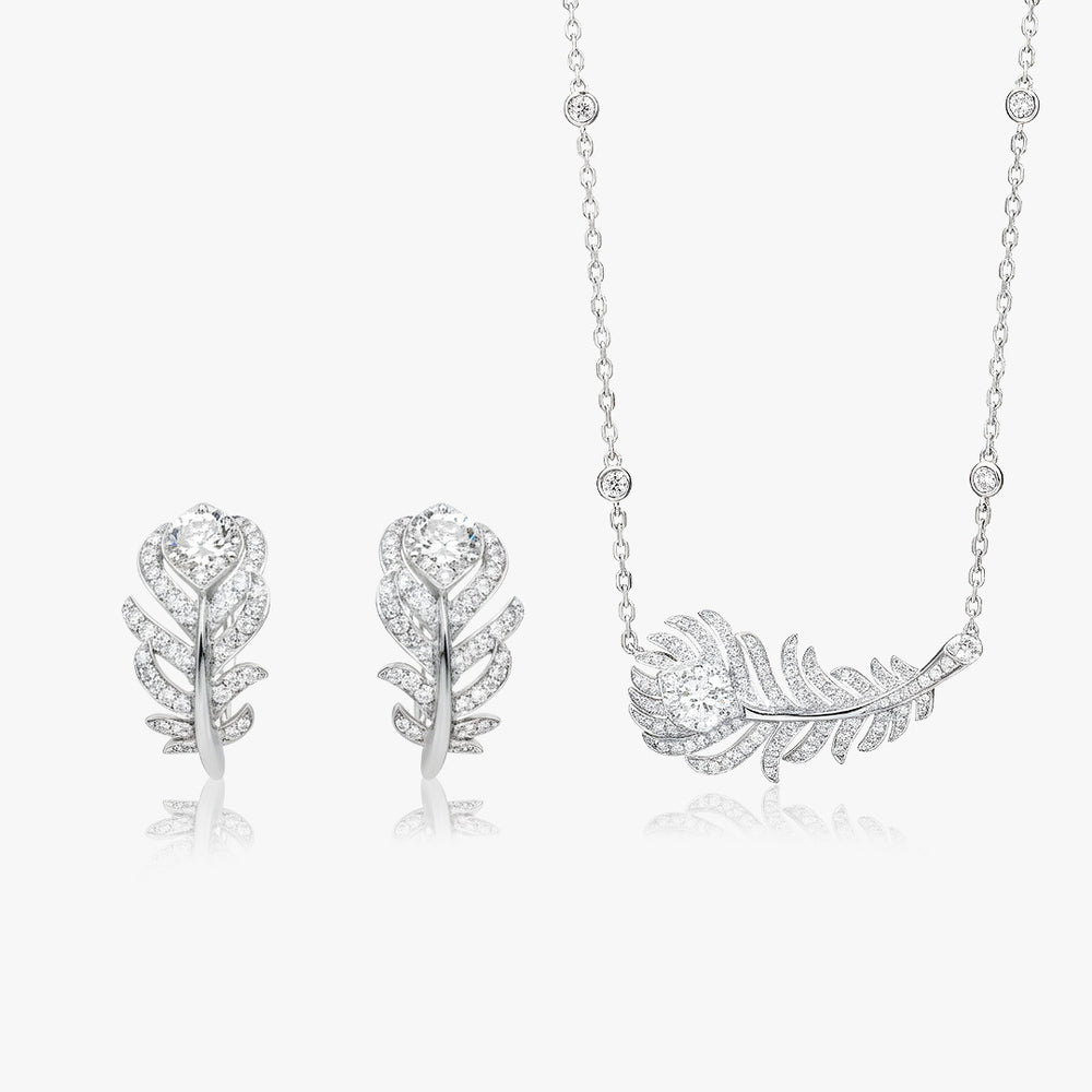 Plume d’Éclat Lab Diamond Set | Platinum Feather Jewelry | SARATTI