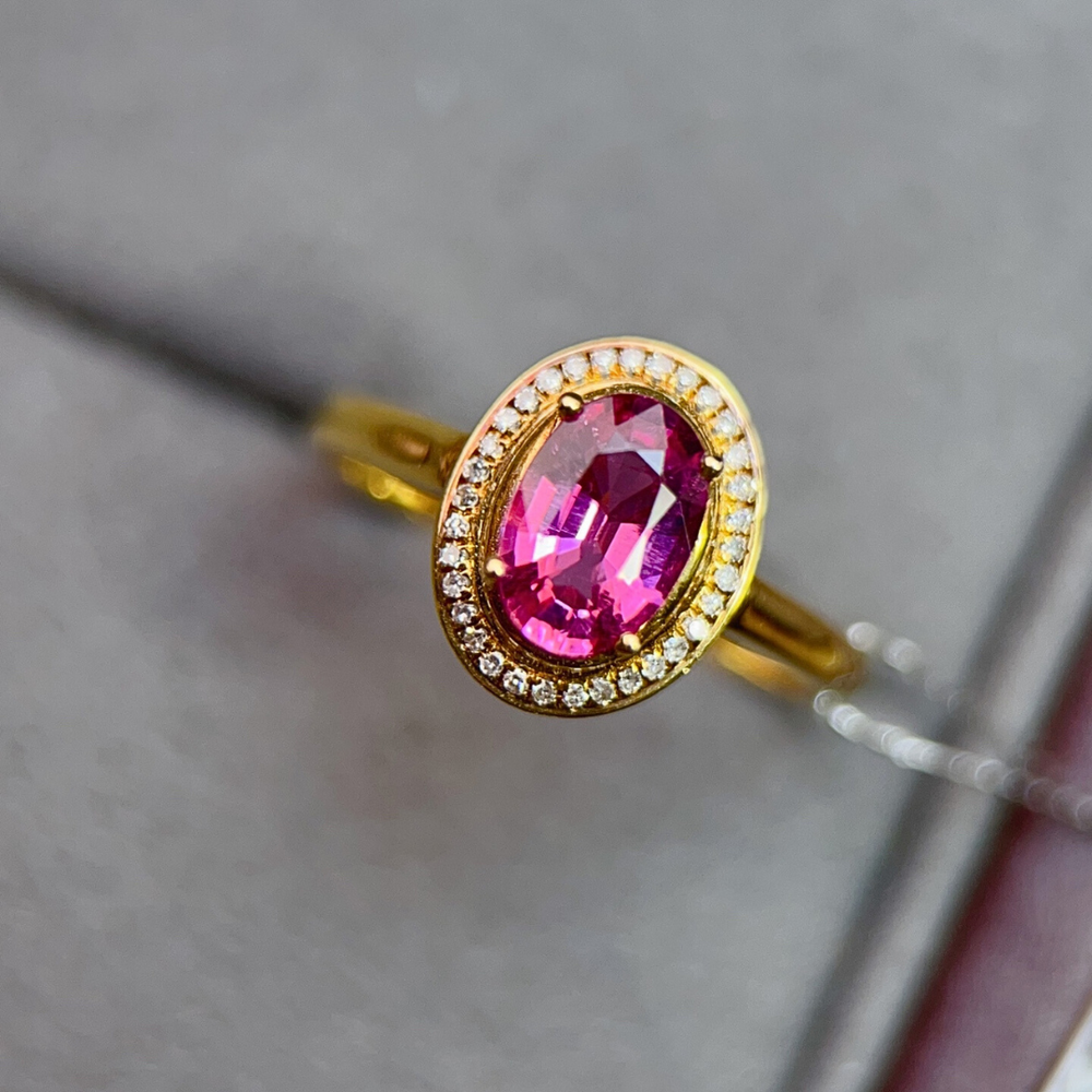 Rosalia – Oval Pink Tourmaline Halo Ring - 18K Yellow Gold【Ready To Ship】 is backordered and will ship as soon as it is back in stock.