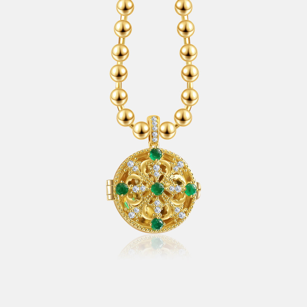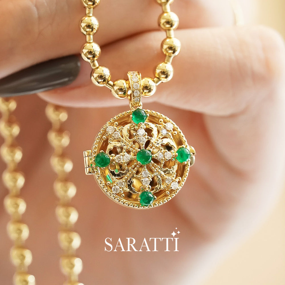 Emerald Rosette - Natural Emerald & Diamond Pendant