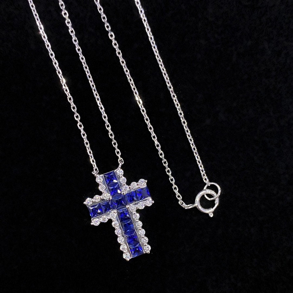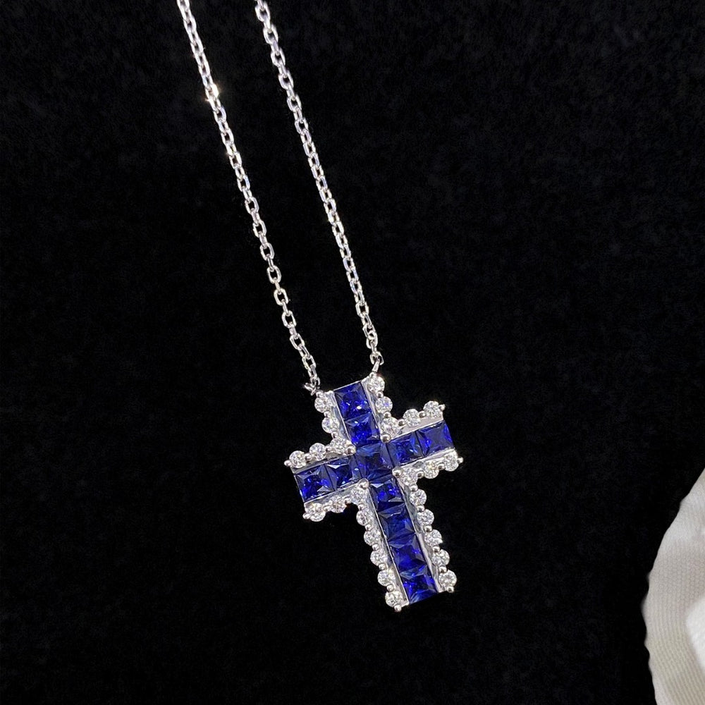 The Celestial Cross - Blue Sapphire and Diamond Necklace