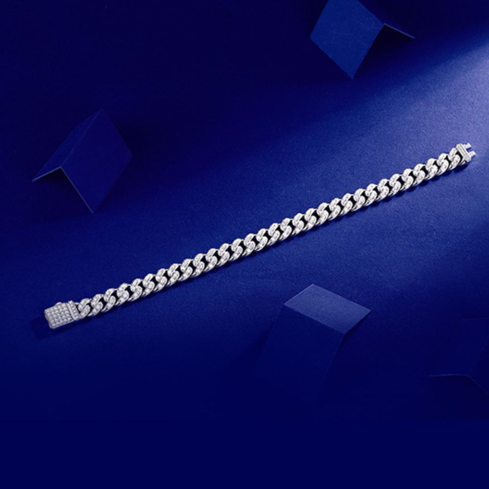 Every link is an attestation to the strength. Every moissanite is set to reflect an ambition. A dazzling 3.6 carats premium moissanite, twinkles like the night starts. Seamlessly handset within the bold Cuban link silhouette. Their fire mirrors relentlessly to drive those who dare to rise.