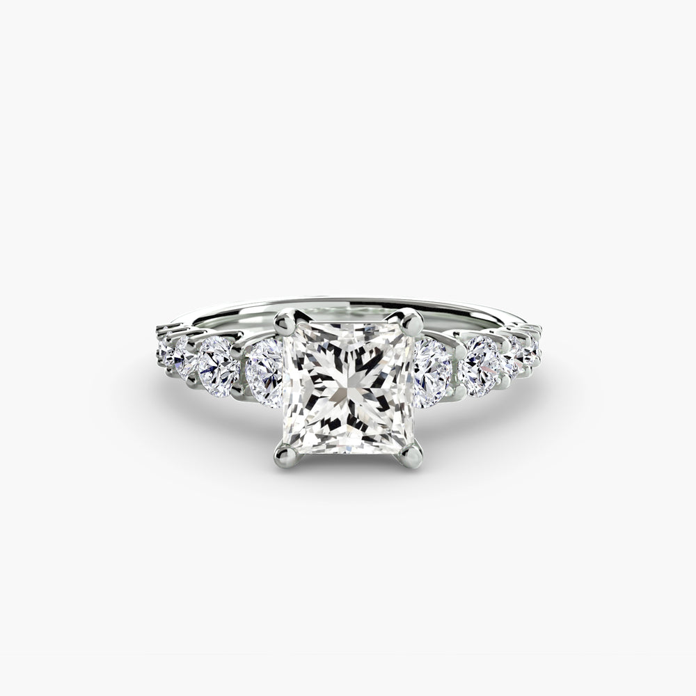 Designed with side stones that gracefully complement the center stone, this ring strikes a balance between classic elegance and added brilliance. Perfect for those who want a refined look with just the right amount of sparkle.