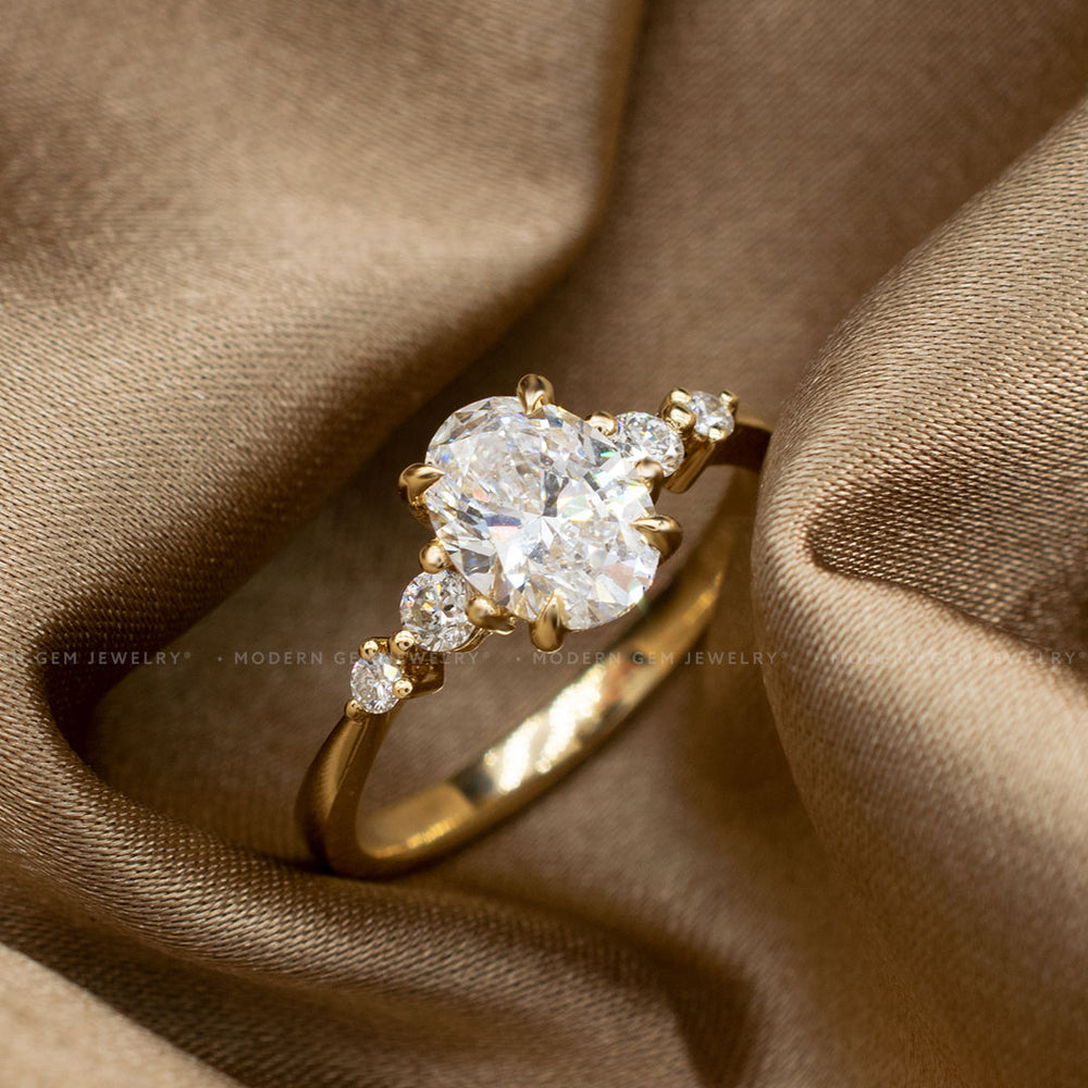 Chloe is a cosmic ballet on your finger. She features an 1- carat oval diamond with an elongated profile. Chloe reimagines your typical three-stone design with a unique twist.