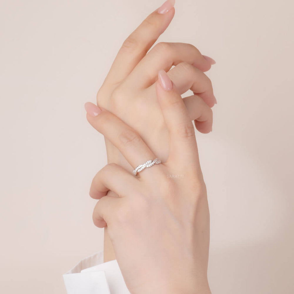 This ring is handmade from 18K Solid White Gold with a unique curved shape inspired by royal tiaras. This adds a touch of majesty to your style. A wedding band, designed for only the woman who appreciates modern and twist of vintage charm. A work of art, which can be worn every day.