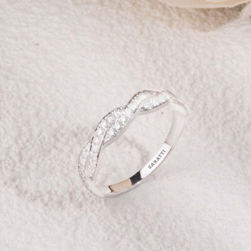 Twisted Shank Vintage Diamond Eternity Band in 18K White Gold