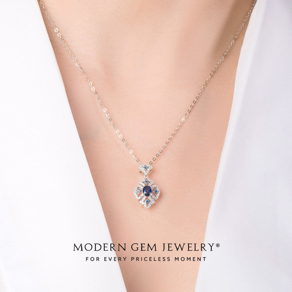 Vintage Inspired Oval Blue Sapphire Necklace