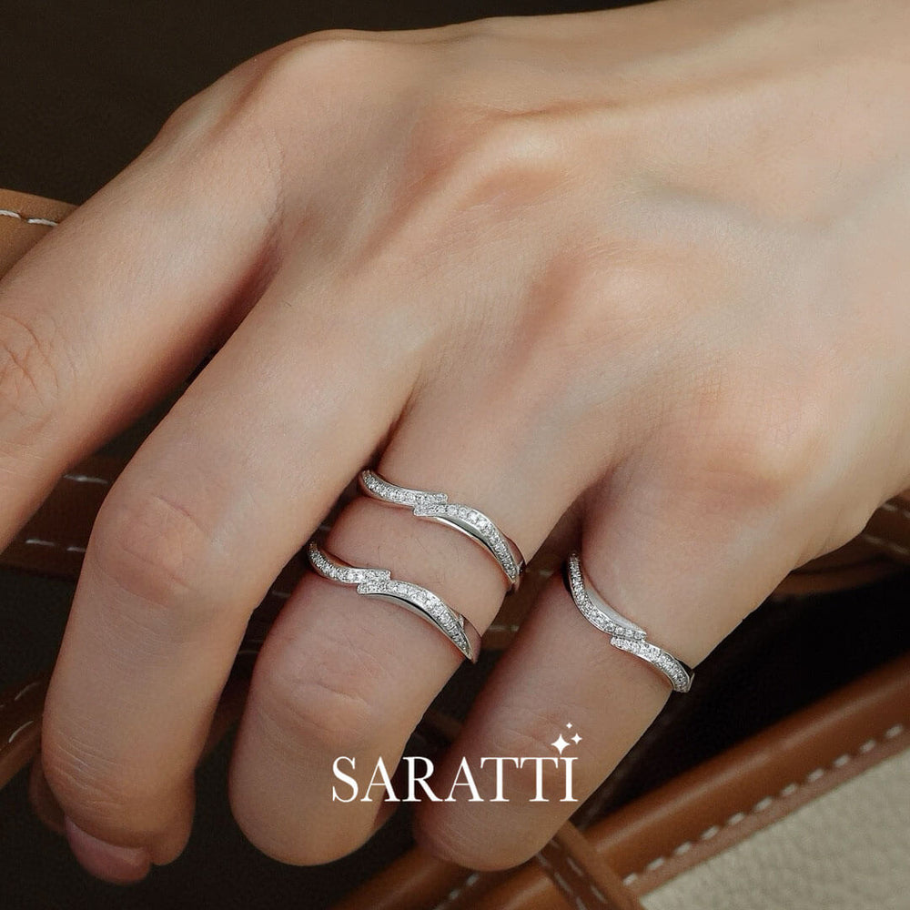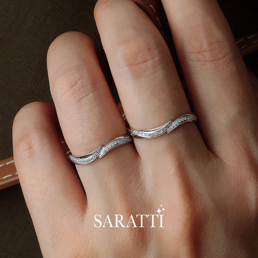 Bask in the beauty of this classic Half Eternity Wedding Band, which features 26 natural round diamonds. These gems are set in an elegant wavy pattern, which stands for the journey of love.